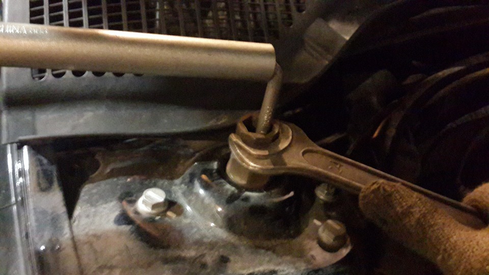 Откручиваем верхнее крепление стойки с помощью спец.головки(но там размер стандартный, с ней проблем нет)