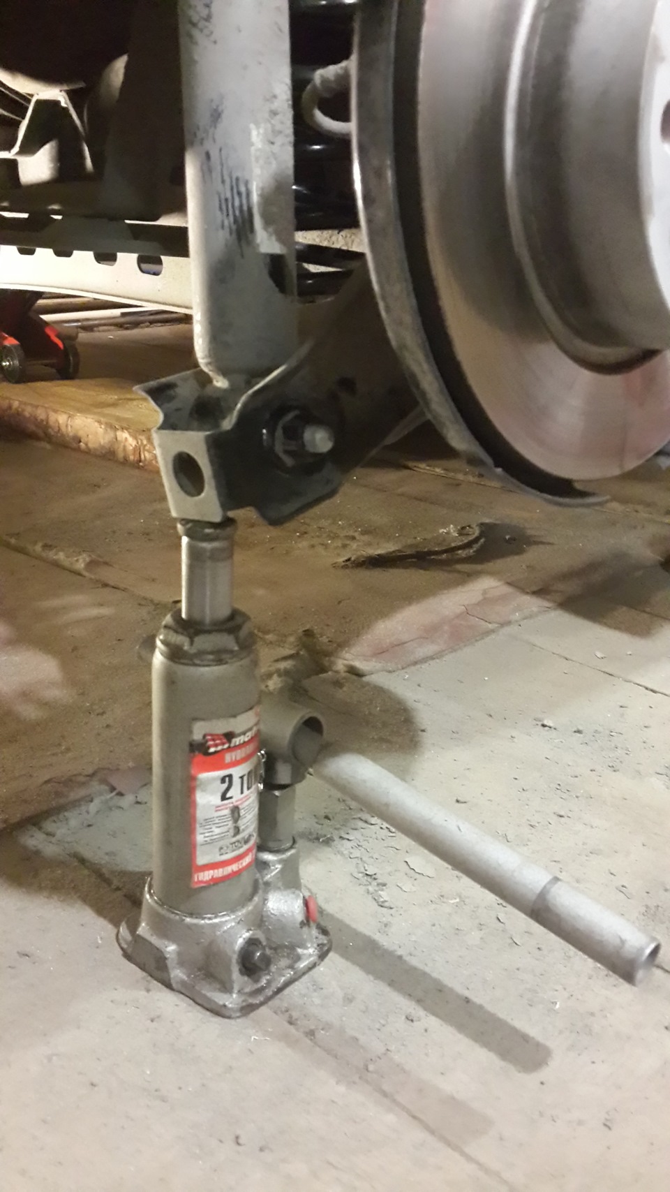 6. К этом моменту струбцины(мне хватило 2 штук) уже должны стянуть пружины по максимуму, т.к от этого зависит "ход" вашей стойки, выбирайте стяжки с как можно большим количеством резьбы(без пустой середины) и не длинные, чтобы не упереться сверху в лонжерон, а снизу в опору, я таких струбцин в магазине не нашел, благо оказались у знакомого. Теперь берем стальной прут("квадрат") и делаем рычаг через привод на подрамник(один давит это все вниз, другой через брусок выстукивает стойку наверх), прям в притирочку, но вышла без особых проблем!