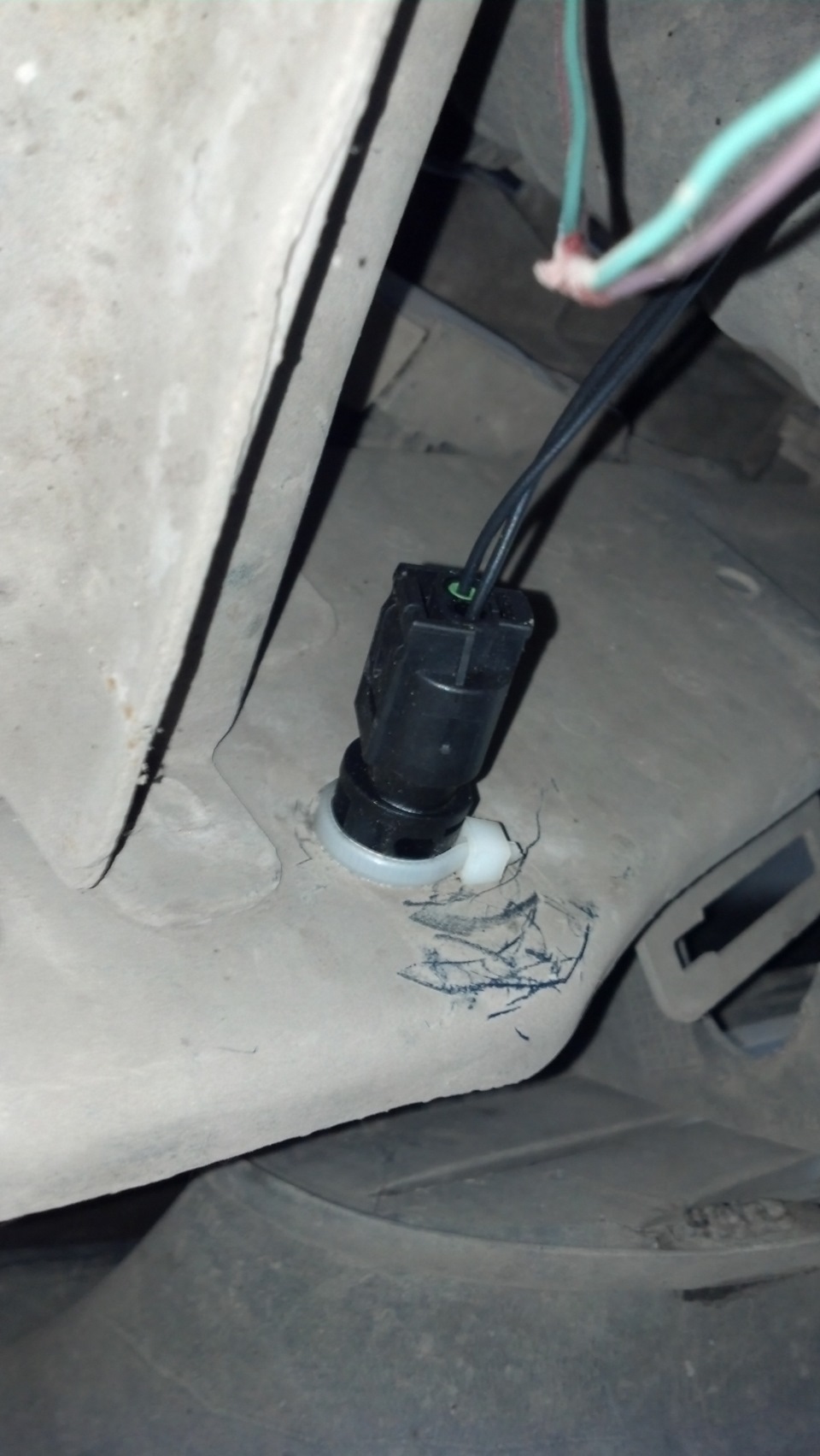 4. Устанавливаем датчик температуры в удобное место в дали от радиатора и мотора, например под передним бампером, рядом со штатным местом установки датчика внешней температуры.