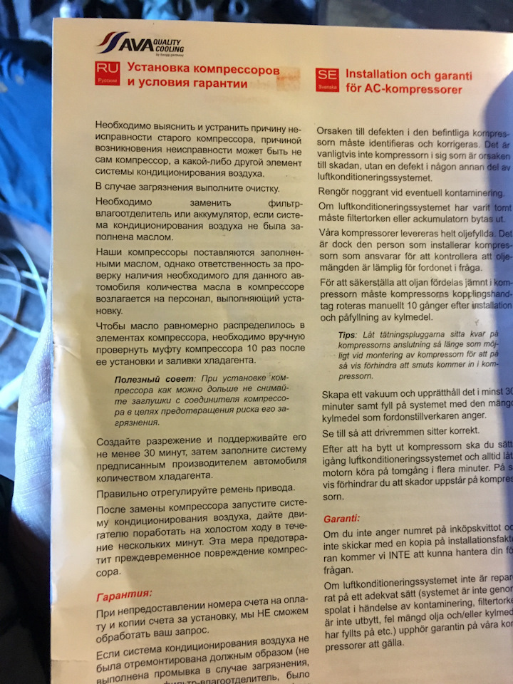 Позвонил в знакомый магазин, сообщил вин и мне предложили немецкий компрессор AVA за 11500 (были еще Nissens, тоже говорят хорошие), но на следующий день (это притом, что б/у ориг на разборке 6000 и как кот в мешке).