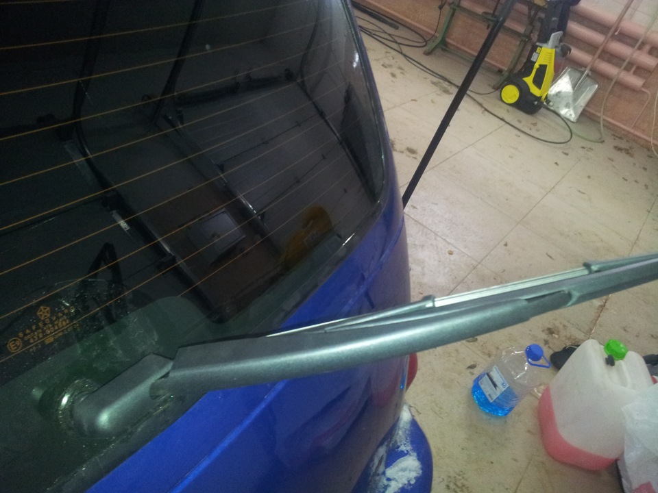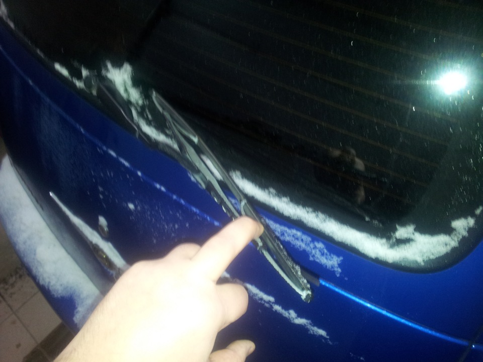 Резинка заднего дворника немного надорвалась и возникла угроза поцарапать стекло держателем дворника и еще утомил меня задний дворник тем, что при мойке невозможно было отогнуть на нормальное расстояние и выглядело это так: