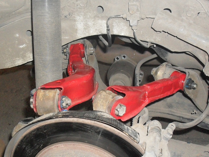 После установки винтовых стоек, угол рапзвала задних колёс ушёл на 2,5 градуса. Это минимально достижимый с помощью регулировки угол. Ну а поскольку в стране финансовый кризис, который не обошёл и меня, было принято решение вместо покупки за штуку баксов комплекта брендовых изделий Ikeya Formula
