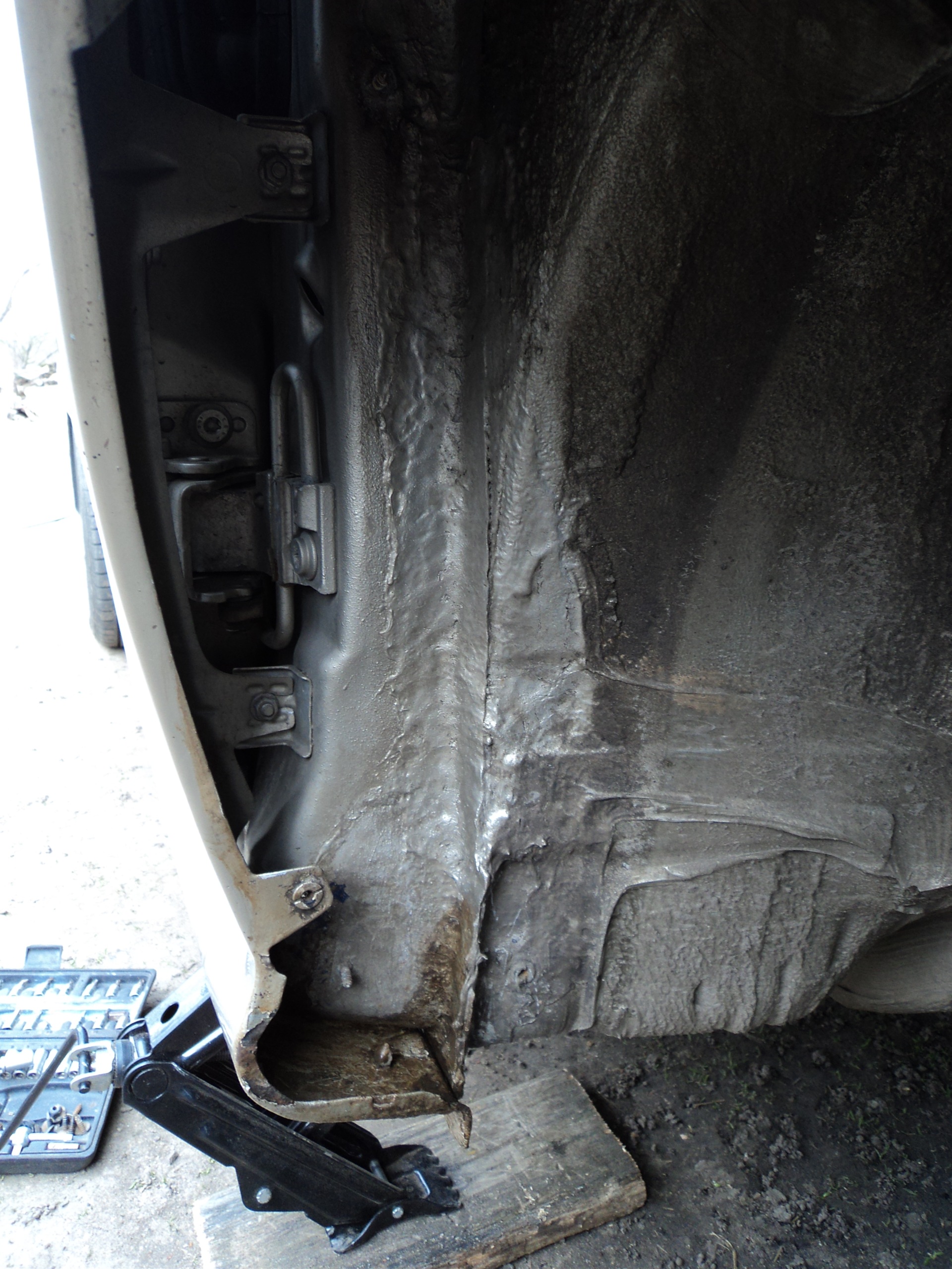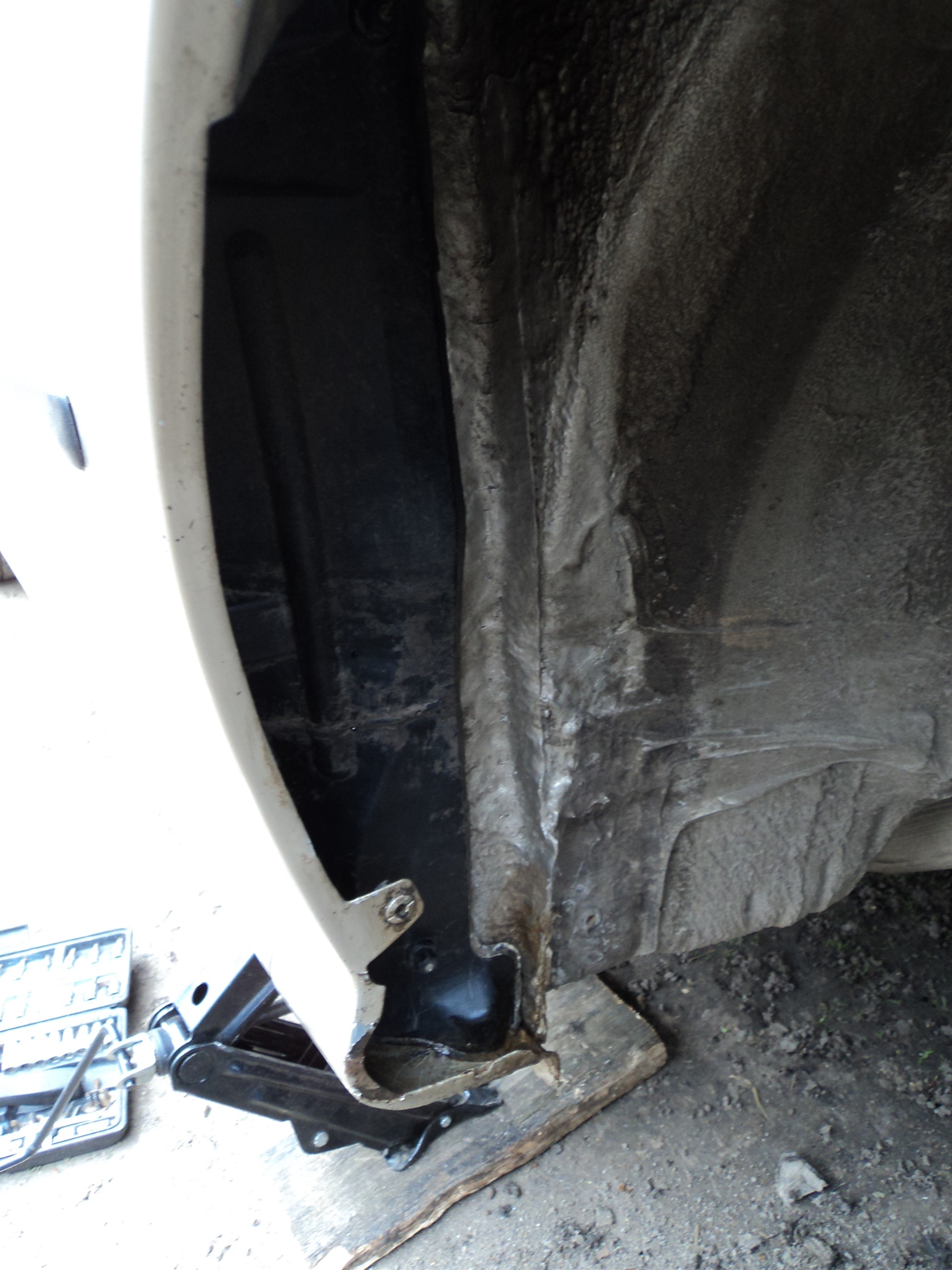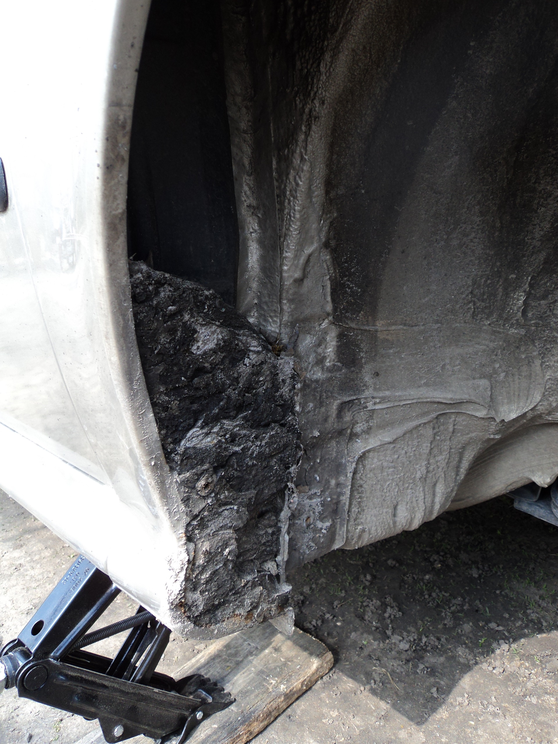 Решил посмотреть что там делается под подкрылками передних колес.Снял маленький брызовичек и отогнул защиту а там…(как раз у низу крыла за колесом)ужаснулся что делается.Как увидел скоко там грязи, сразу за домкрат снял колесо затем полностю подкрылок и занялся чисткой!
