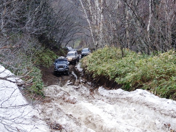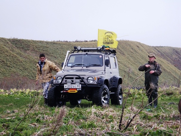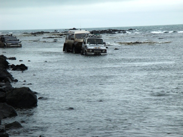 К вечеру пришли в Холмск к стоящему в готовности Боингу, перегрузились, упаковались и в районе 19-00 двинулись по побережью через Невельск, Шебунино к месту первой стоянки-так называемому пьяному роднику(джиперы в теме, в курсе)