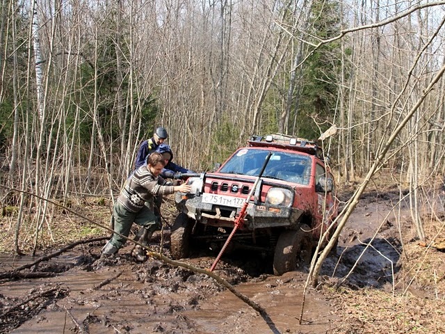 На распутице заявились в стандарт (колеса до 30.5 дюймов, без лебеды) и весьма успешно прошли всю трассу. Из-за несогласованности действий штурманов (у меня их было два) мы потеряли около 40 минут времени и в итоге оказались на 4-м месте. Неплохой результат, тем более, что первые три места остались за тверскими ребятами из Лебедушки, для которых эта местность — дом родной.