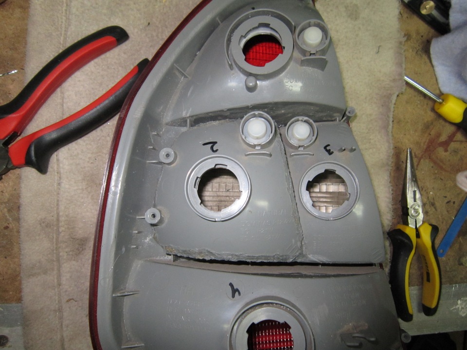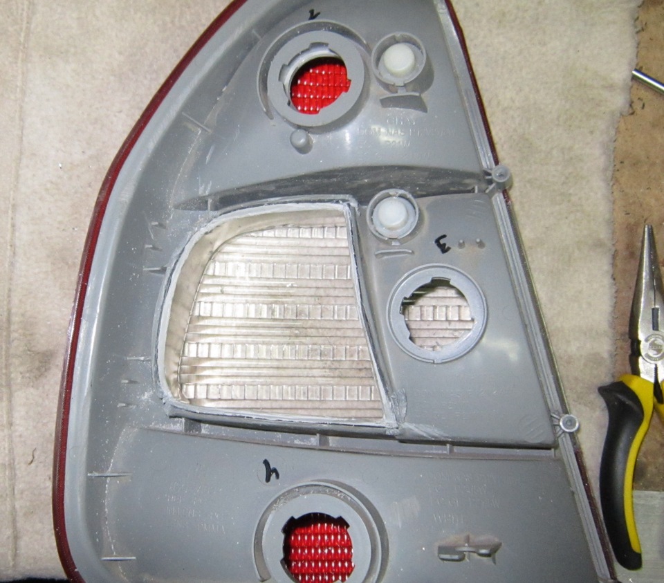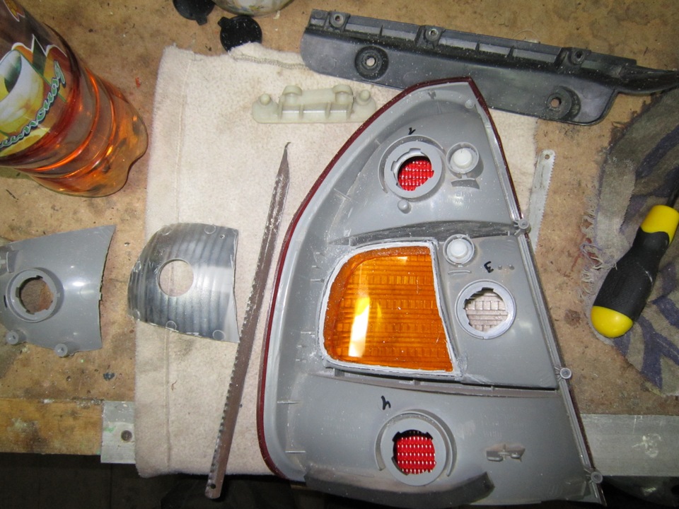пропил делал обычным полотном по металлу (это быстрее всего), вырезал только одну секцию…смысла вырезать вторую вообще не вижу, с первой фарой пришлось минут 15 повозиться чтобы достать желтяшку а со второй проблем уже не возникло, все там просто!к вопросу не потеют ли фары…нет и не должны…как отражатель так и сам пластик фары помимо того что как следует пропаял, так еще сверху как следует прошел поксиполом)на фото видно)