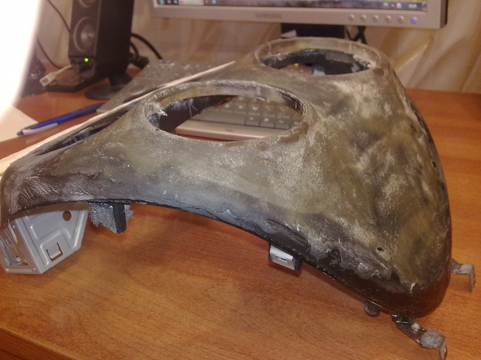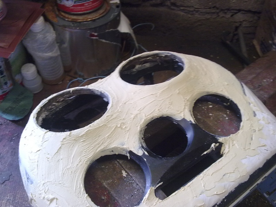 Говориш колготки натягивал на консоль и сверху смолой мазал слоями чтоб пластик получился и его уже шпаклевкой замазывать?