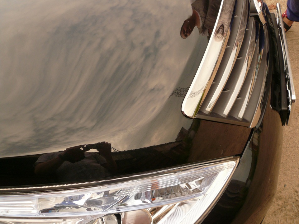 в остальном ничего сложно нет. я перед нанесением обрабатывал кузов очистителем от насекомых, битума. желательно делать на улице в не солнечную погоду. я делал в боксе, когда выехал на улицу кое какие места еще дополировал от разводов.