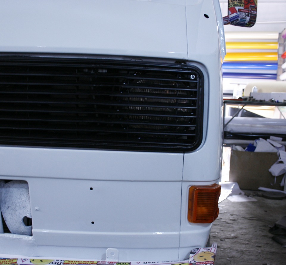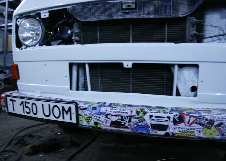 Решетку где фары надо на половину подрезать, как видите одна готова, вторую надо еще доделать, а то дальний никакой )