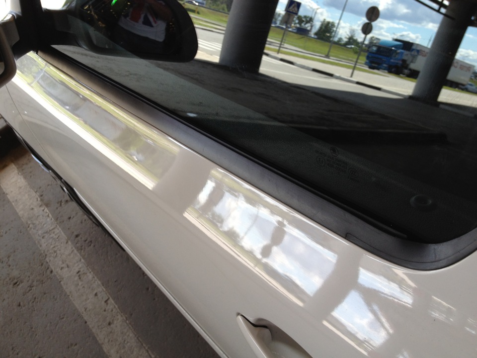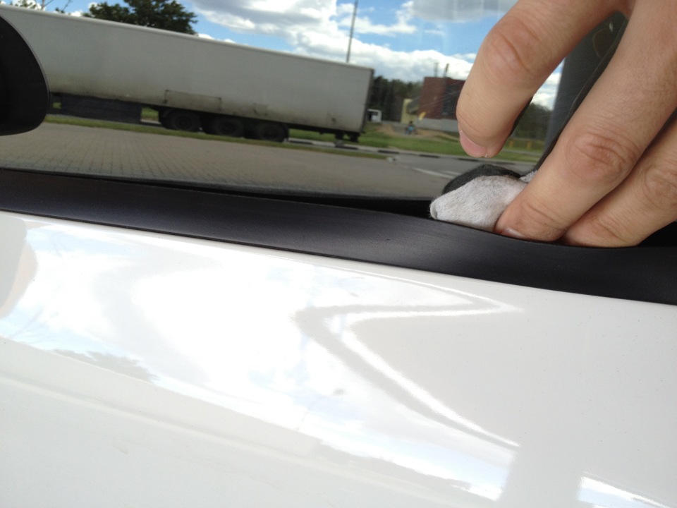 Да проблема актуальная!Тока я не понял ты приклеил уплотнитель к нижней части стекла под резиновый молдинг?