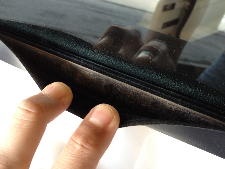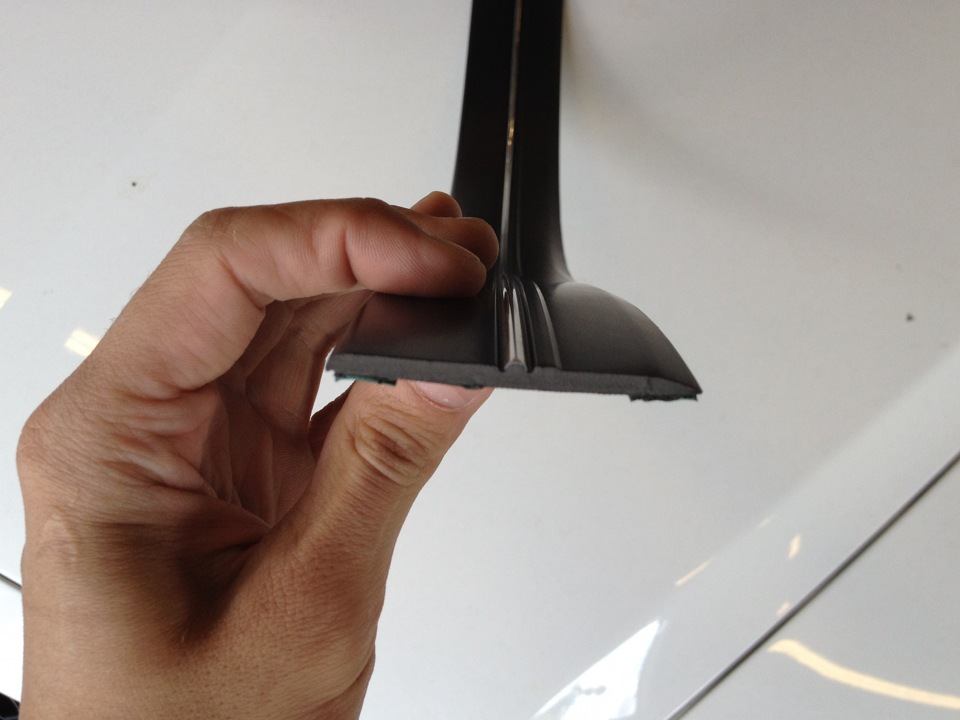 Я отрезал полоску нужной длины и взял не всю ширину резинки, а где-то около 0.7см. Дальше просто. Штатный молдинг, если его подцепить, хорошо оттягивается от стекла, там нужно хорошо протереть и обезжирить, ибо грязи там дохрена.