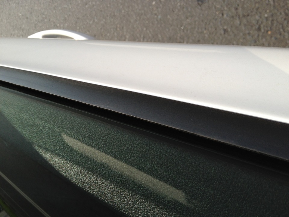 Единственное не аккуратное место — у края двери. Там под уплотнителем есть выступ, мешающий опусканию с новой резинкой. Поэтому до конца завести не удалось.