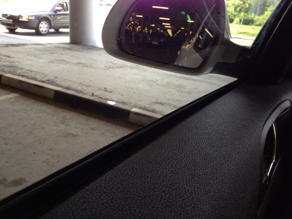 Примерно так, при опускании стекла появляется зазор (фото на айфон, не очень удачное):