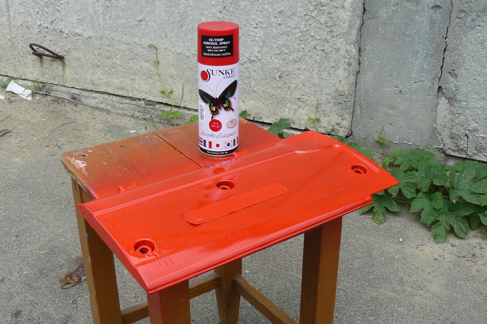 Высокотемпературная краска всегда под рукой и процесс начался.
