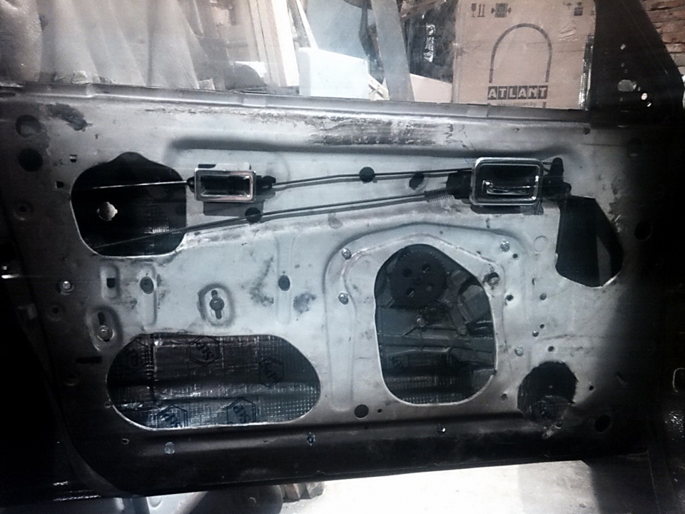 В итоге всё вроде как и очень даже хорошо собралось, по крайней мере приятно, что ВСЁ ЭТО от других авто и встаёт должным образом. Все курки дверные, тяги и щеколды, рамки хромовые, хром на двери и резинки в него — выбрано самое лучшее из всего, что я назапасал за время стройки этого каравана, в 95% это не от моего авто. ЭСПы смазаны и почищены, бегают хорошо, двери как у холодильника теперь =)