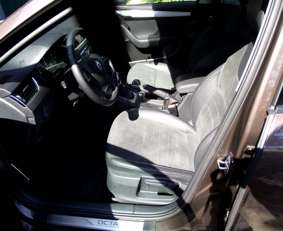Поскольку я люблю чистоту в салоне, то могу сказать на основе многолетнего опыта, что ухаживать за кожей и алькантарой, лично для меня, проще чем за тканевым салоном. И в этом ключевой момент, удобство и внешний вид — уже вторично, но не менее важно. Считаю, что Skoda Octavia — тот автомобиль, который достоин иметь кожаный салон. К сожалению, на вторичке, автомобилей с 10м и 11м пакетом найти не смог, а варианты которые предлагают дилерские центры не привлёк ни качеством ни ценой.