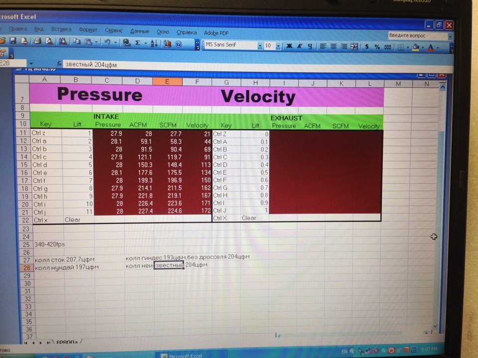 например на моей голове с непилеными ну или с почти непиленными каналами после подъема клапана свыше 11 мм при продувке с разрежение в 30 дюймов воды начинался срыв потока и продвка падала примерно на 5-7 сфм… — короче на практике все гораздо серьезней!