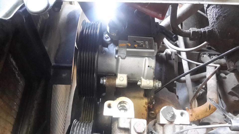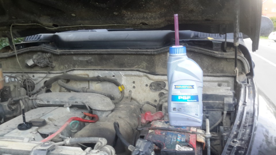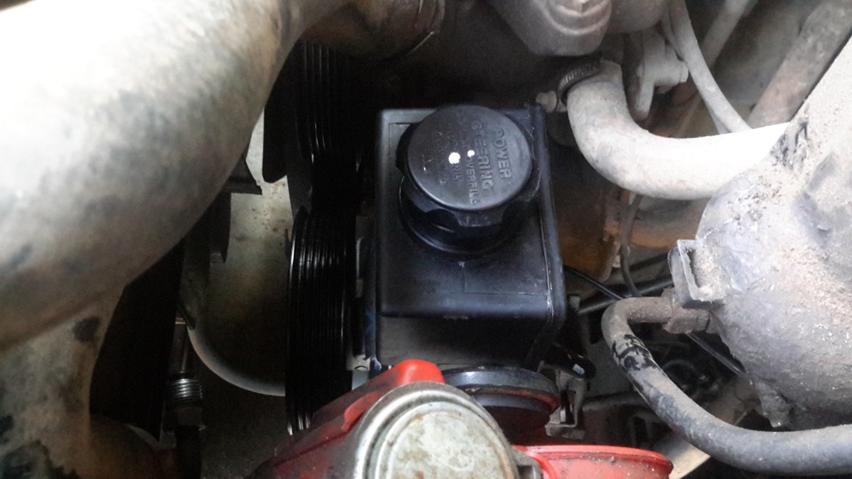 Залил жижу, предварительно подключив все шланги, покрутил шкив рукой, чтобы все элементы смазались (заливать предварительно шприцом в дырки для шлангов нет необходимости, т.к. PSF сразу же растекается по всему насосу). Надел ремень и прокачал поворотами руля до упора и резкими качками влево/вправо.