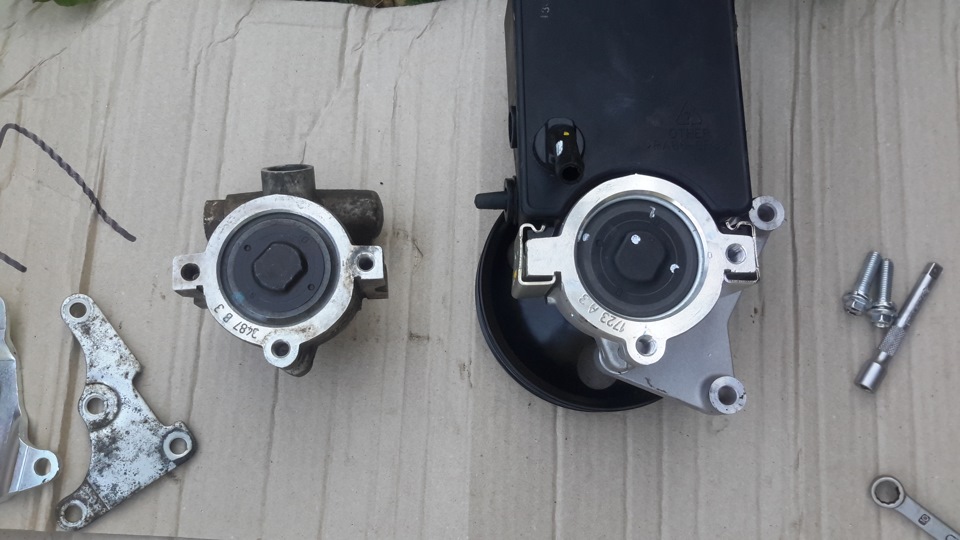 Ниже можете видеть сравнительные фото насосов и кронштейна (старый насос в полуразобранном состоянии).