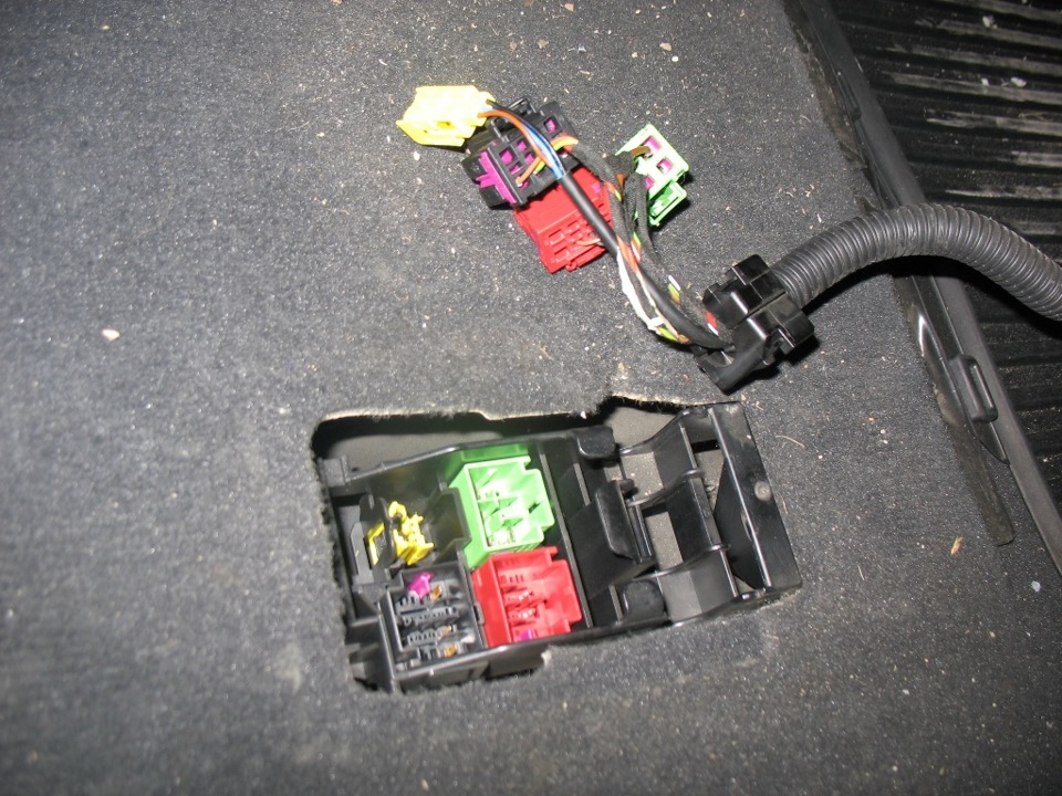 Провода протягиваем вдоль порога с общим жгутом к блоку предохранителей со стороны водительской двери.