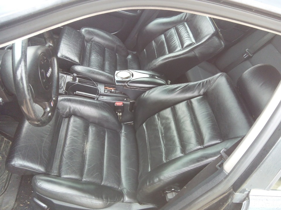 Передние рекаро я взял за 50$. Пришлось перетянуть пару элементов боковых поддержек, перетяжка кожей обошлась в 155$, и того 205$. Плюс отдали проводку и кнопки для подогрева.