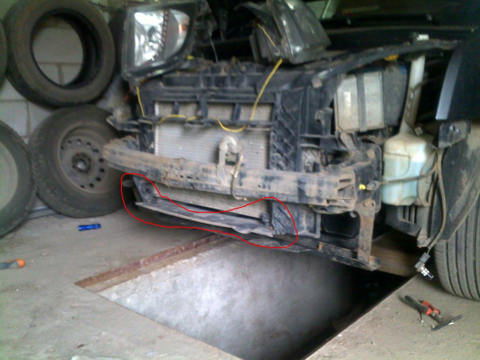 Выделенное — это воздуховод (дефлектор) радиатора нижний. Обрадую тебя, там должны быть ещё два дефлектора, правый и левый.