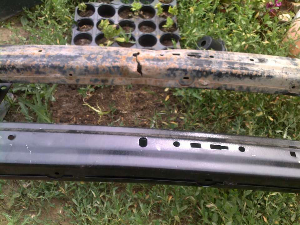 Но потом я нашел причину. усилитель бампера на котором держится вся геометрия передка ни кто и не думал менять, хотя да какое там менять, даже нормально выровнять.