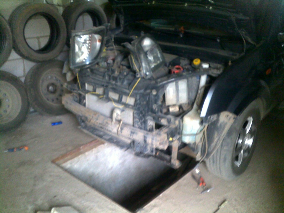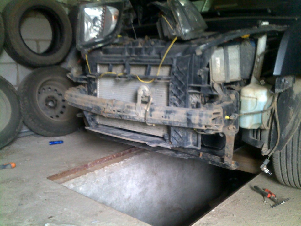 Снимать передней бампер можно несколькими способами, 1 — снять фары и подлезть к саморезам, 2- снять защиту. (в инете много инструкций что и как делать, думаю нет смысла писать)