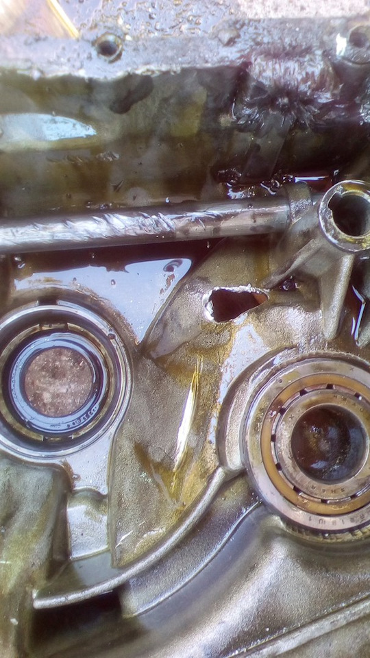 особенно когда трогаешься с места, удар был будто что-то оторвется, приходилось чтоб удара небыло оборотов побольше делать и потихоньку отпускать сцепление, тогда без стука, люфт тоже приличный был, если газ сбрасывать и нажимать то страшно становиться кажется что еще такой разок и все, ну в принцыпе поездил немного а как в крутую гору в захолустье надо было заехать, стук удар, рычаг переключения заклинило и сильно завоняло маслом, я сразу понял что время пришло=) еле вытащили машинку=( осенью в начале буду перебирать полностью коробку, так как я собирал из двух коробок одну и на старых подшипниках и выжимном крафт пластмассовом… по звуку коробка реактивная, поет как самолет, привык правда уже=)