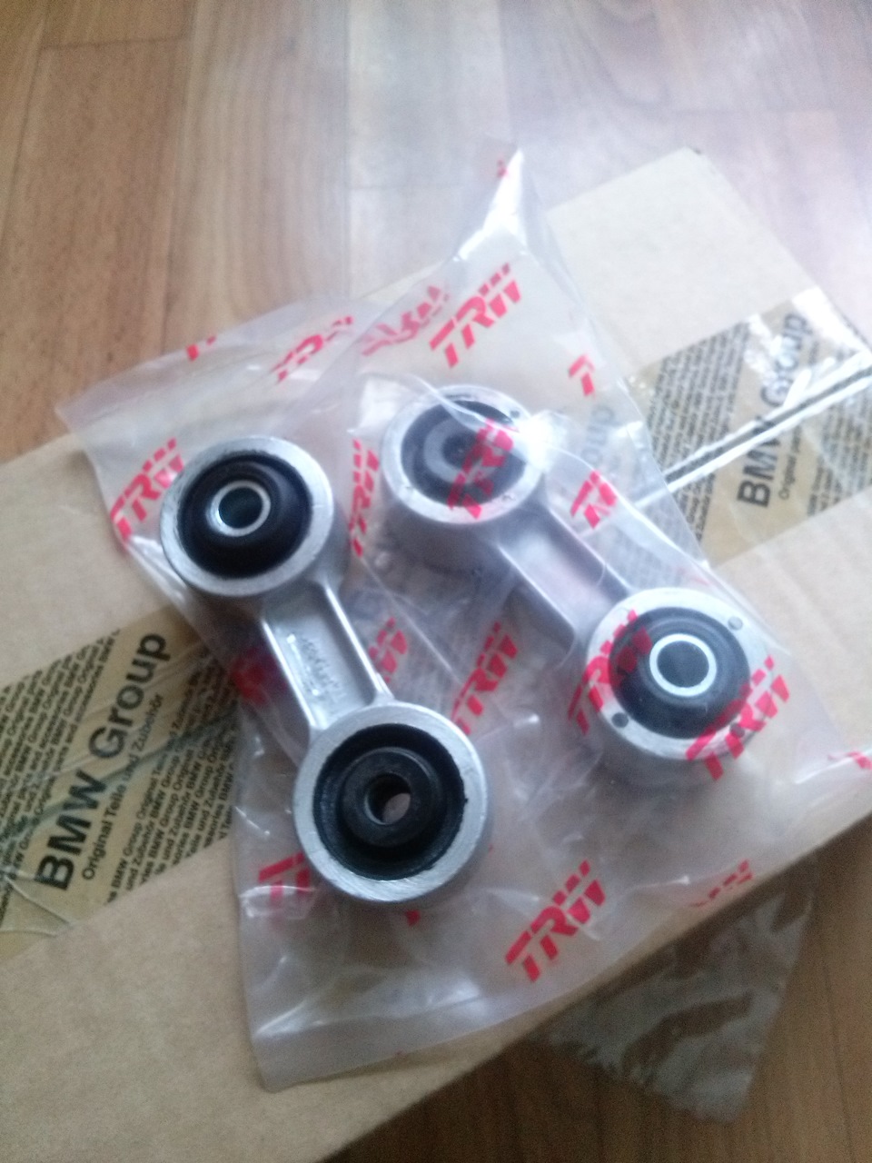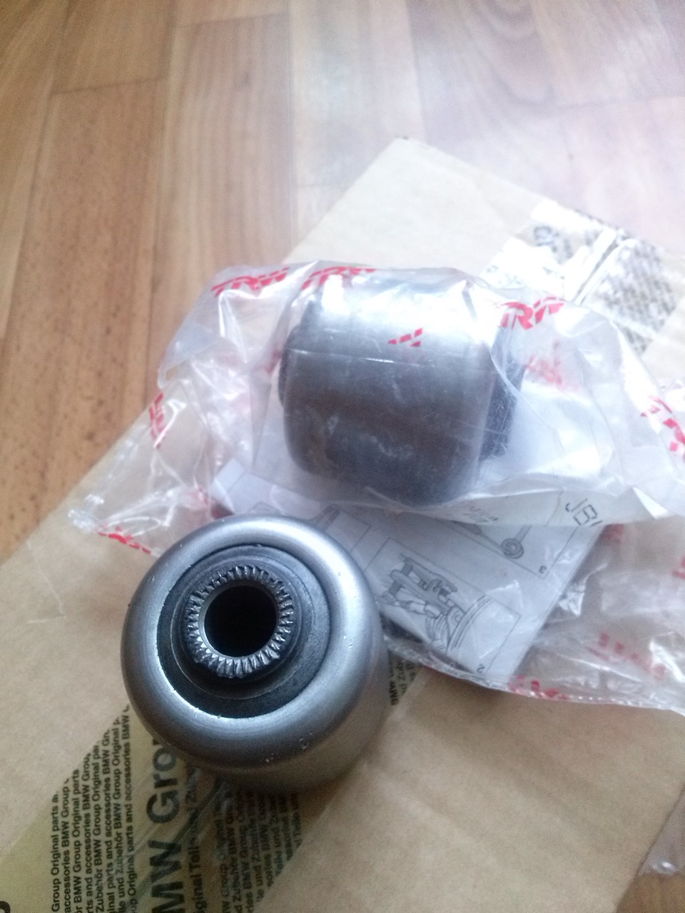До замены стартера начал замечать что левое переднее колесо издает инородные звуки. Когда полез менять стартер заметил порваные сайлентблоки верхних рычагов — печаль беда. Заказал сайлентблоки для верхних (Lemforder) и нижних (TRW) рычагов, так же задние стойки стабилизатора (TRW) и плавающие сайлентблоки (Delphi) ("яйца").