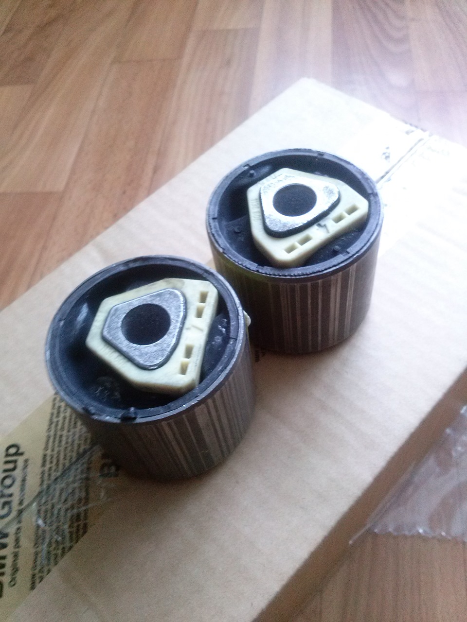 Сайлентблоки верхних рычагов по каталогу номер Lemforder 1053001, я заказал 1053101 — ставились на е34 с большими моторами до 340л.с. и на е32 начиная с трёх литровых моторов. Еще есть Lemforder 1053201 — эти ставились на е31 с V8 и V12 моторами. Все по размерам одинаковые, можно и от е31 ставить на е34.