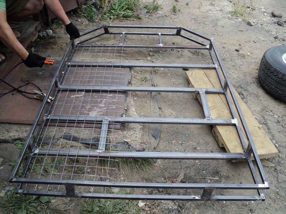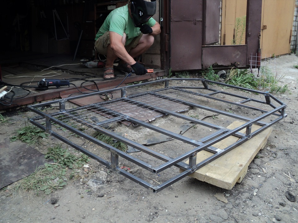 Сварили всё за 7 часов под пиво и на коленке…Следующим заходом доварим сетку, шпильки крепления запаски и канистр …Спасибо огромное ещё раз Косте за помощь…Продолжение следует…