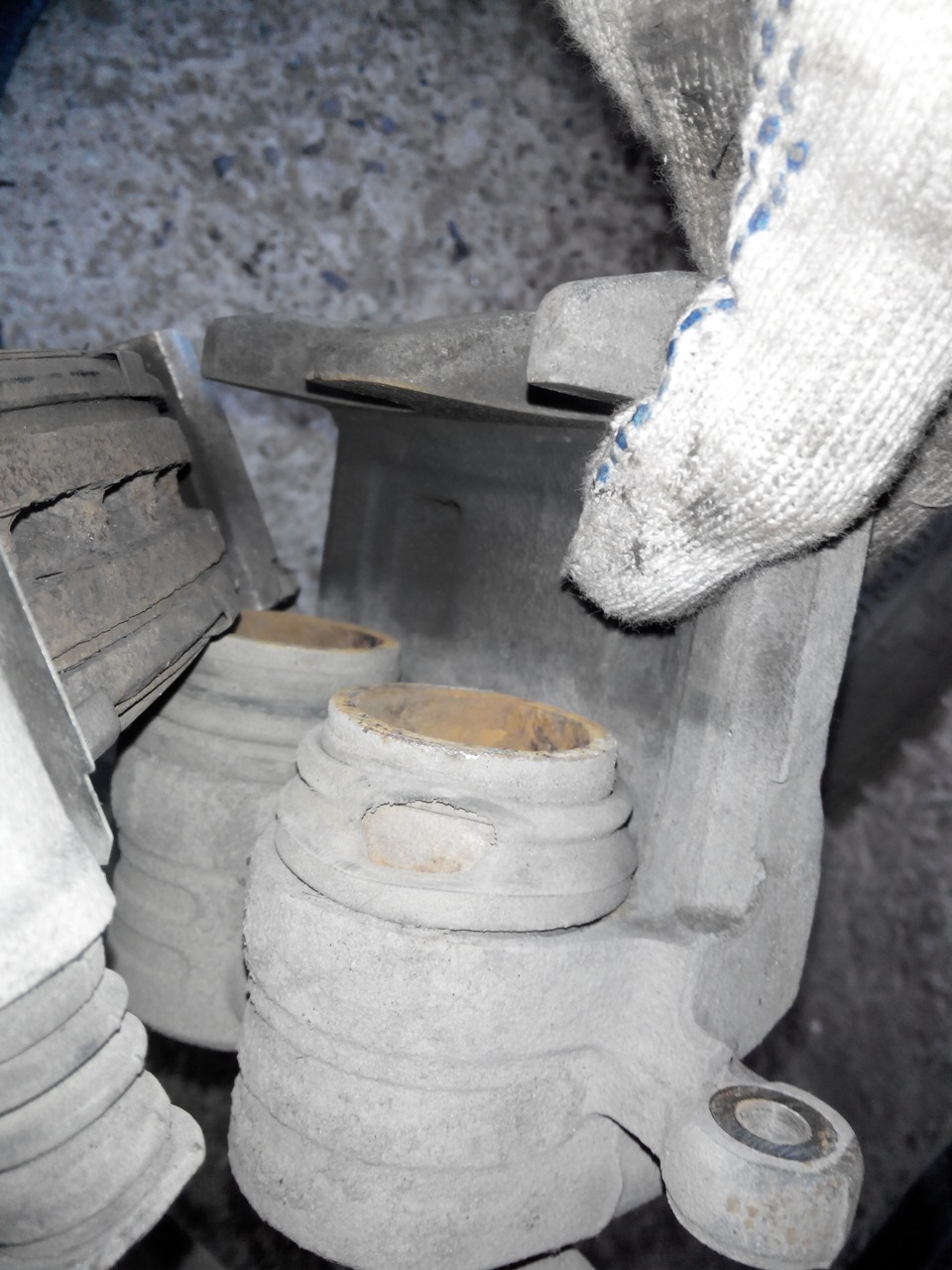 Но при замене колодок этот поршень ооочень тяжело, даже тисами, внутрь вошел… На другой стороне тоже внутренняя больше изношена, но разница не так велика…