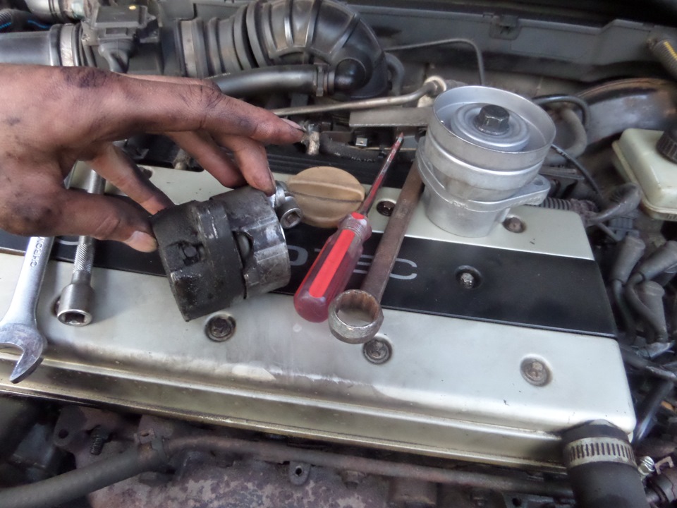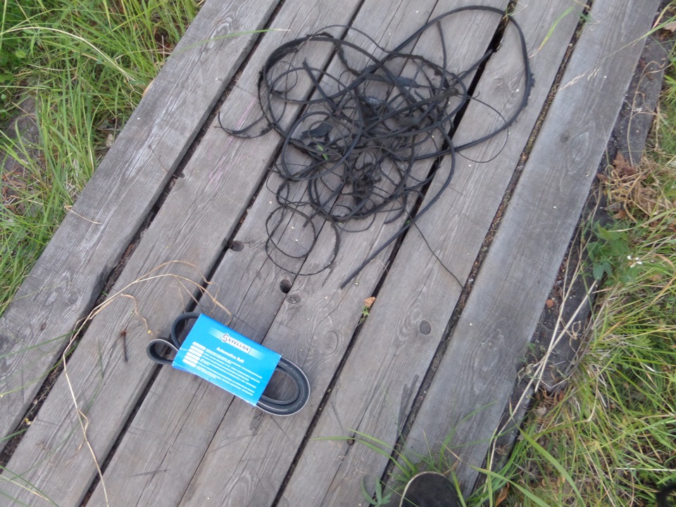 Ремень генератора был не в лучшем состоянии, а во время движения домой сразу после покупки машины он вовсе разорвался. На следующий день мы купили новый ремень и ролик с натяжителем ( он тоже "устал" ).