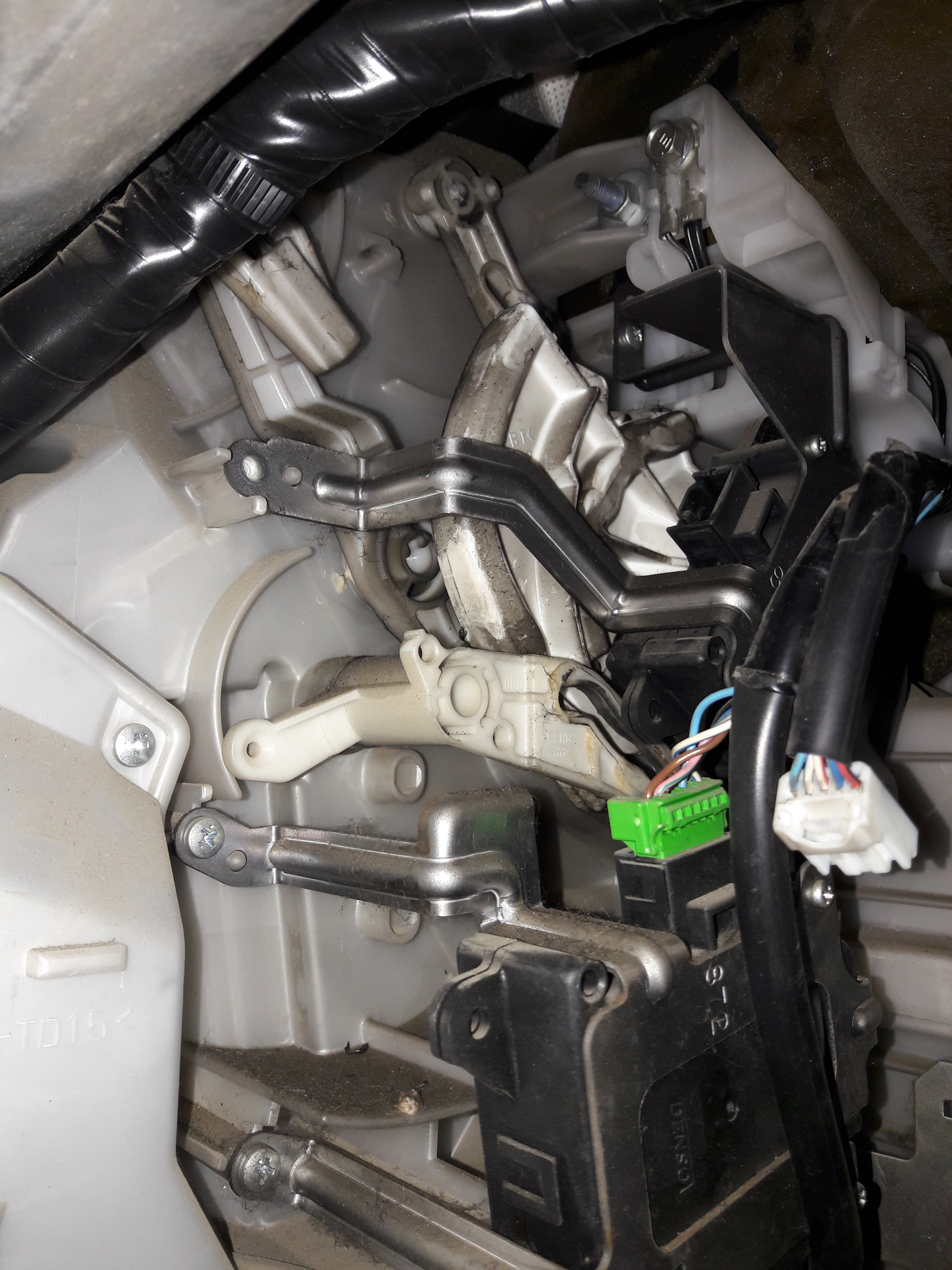 Долго искал что там булькает в печке, когда пришло время замены салонного фильтра, тогда и заметил что заслонки печки "дергаются", погуглил — нашел твой блог, изучил, но времени все не было залезть и сделать. И вот примерно через полгода, как обычно это бывает в самые морозы климат перестал дуть вниз, и как машину не грей ноги все равно мерзнут, пришлось снимать сервопривод.