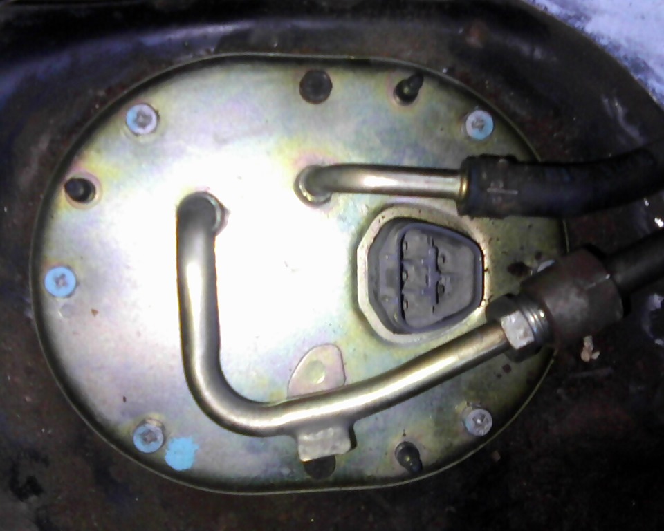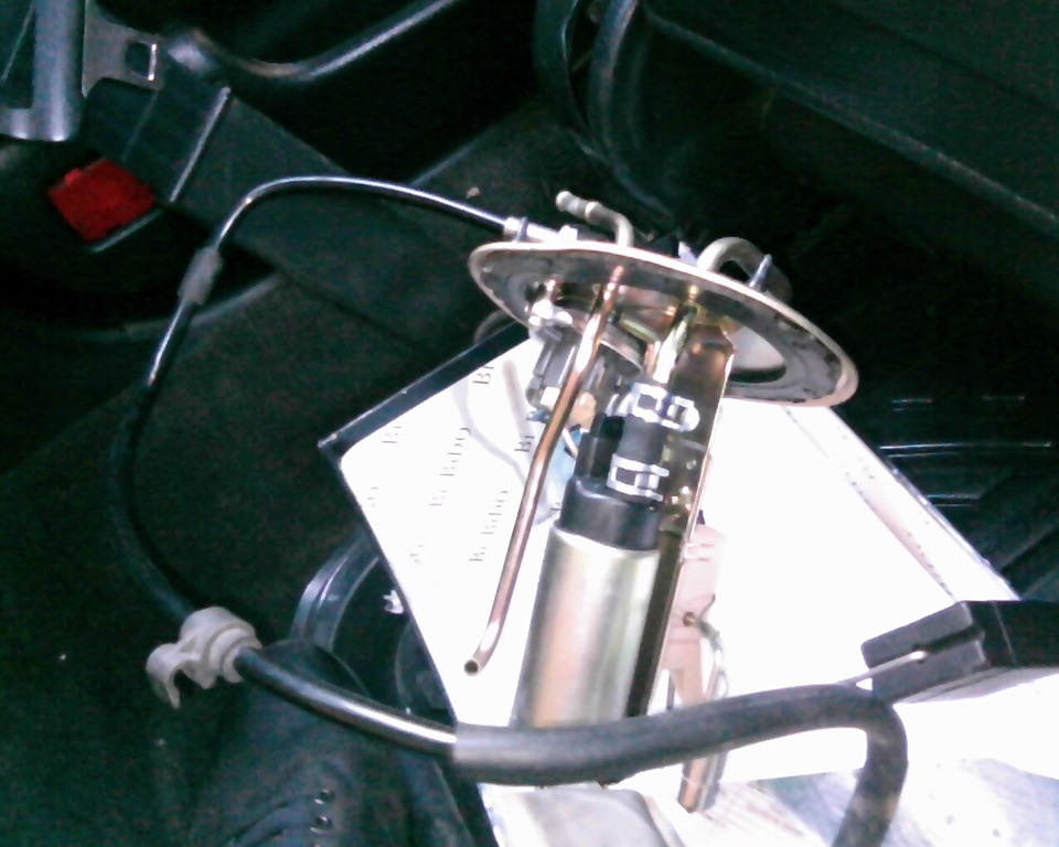 Плохо заводится по утрам, посоветовали заменить бензонасос. Поменял на контракт вместе с кронштейном. Главное перед заменой сбросить давление в системе. После того как отключили штекер бензонасоса — нужно завести машину 2-3 раза и открыть лючок бензобака. Давление сброшено, можно откручивать.