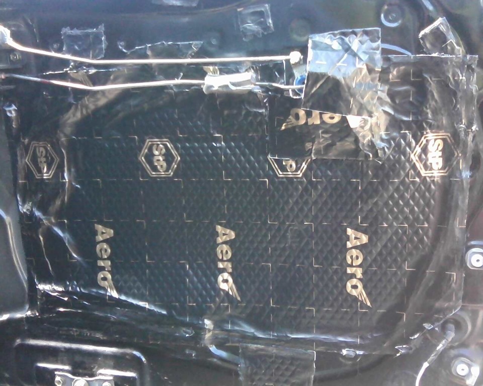 Далее клеим шумоизоляцию.