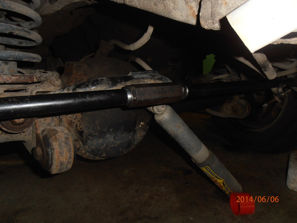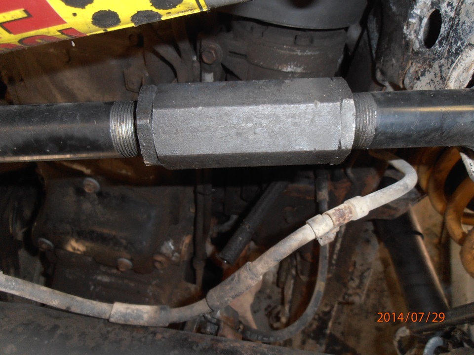 Но на этом экзекуция не закончилась. На глаз было видно, что мосты ушли. Вывод: либо 10т.р. и регулируемая панара заводская, либо к токарю и изготовление регулировочных вставок. Но есть мнение, что самопальные вставки уменьшают жесткость конструкции. Я по говнам серьезным не ползаю, и есть комплект запасных панар, поэтому выбрал последний вариант, плюс решил на переднюю рулевую так же сделать вставку чтобы руль в середину поставить, а то перекидывание руля на шлицах мне не очень нравиться.Тем более мне руль сбило еще когда наконечники съемными делал.