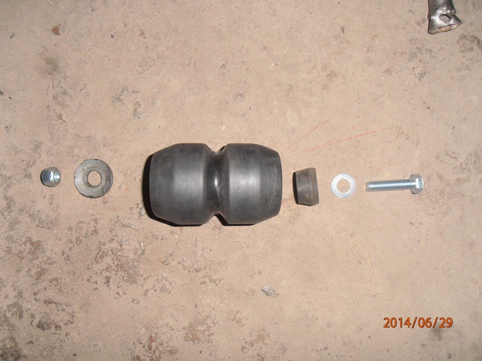 втулка подошла от штатного заднего аморта, без нее болт с шайбой продавливает резину, и коряво как то держиться