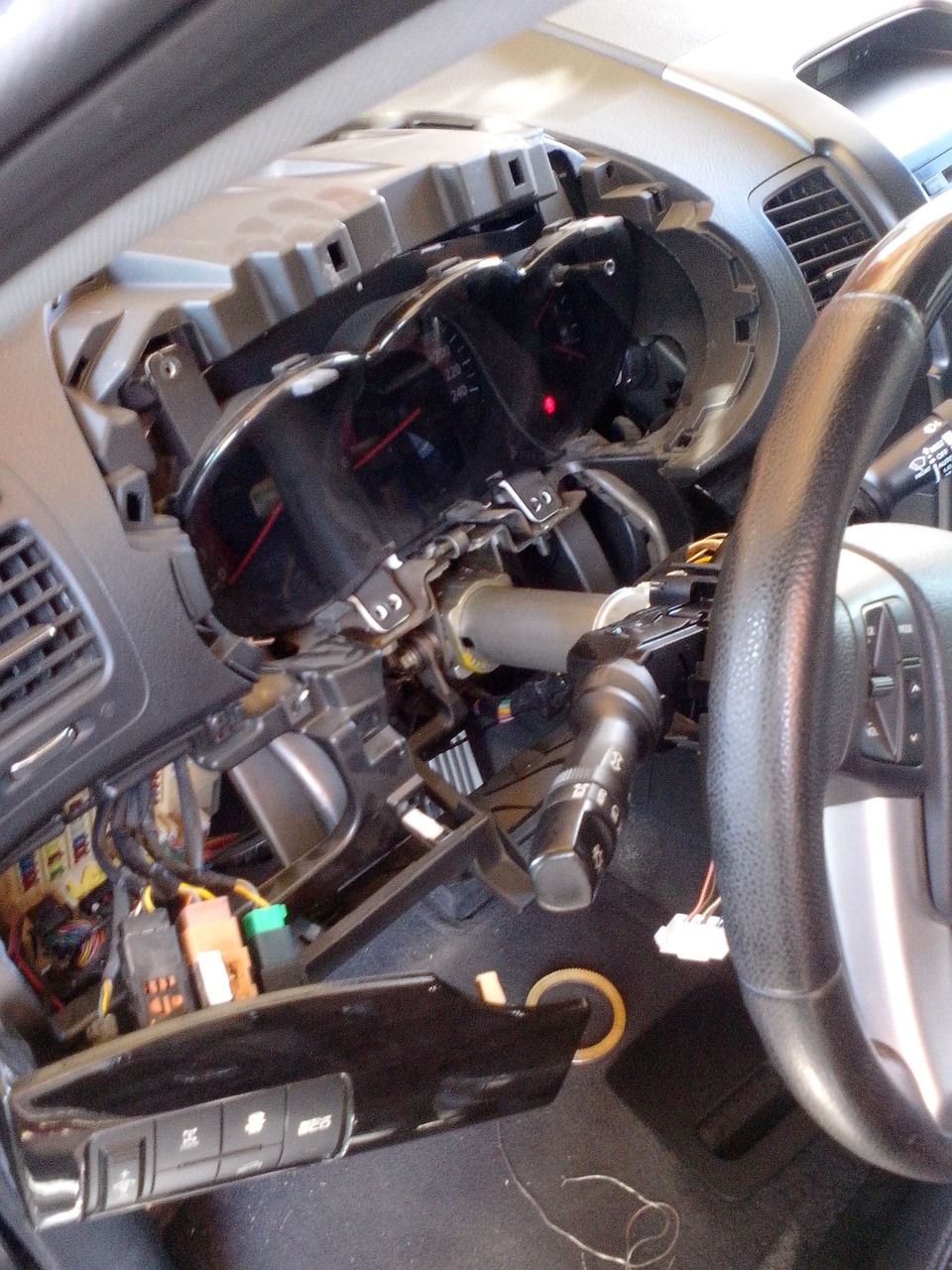 Провода в моторный отсек протащил через проход троса замка капота.