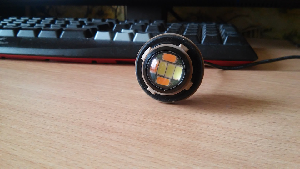 А куда провод от + (оранж) светодиода? И ещё "-" остался от светодиода? Это туда те два провода, что к стоковой лампе поворотника подключались?