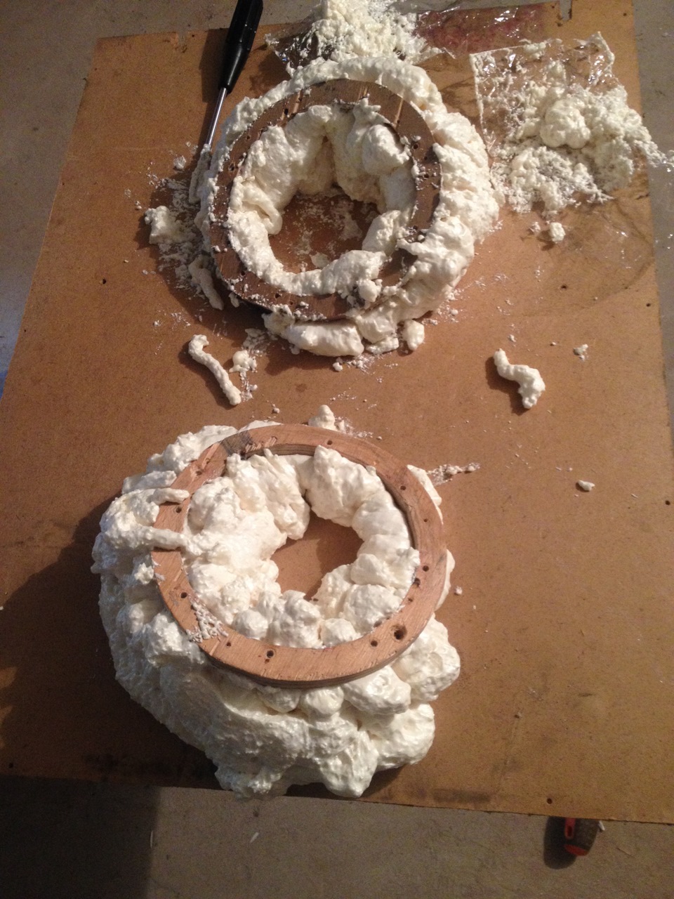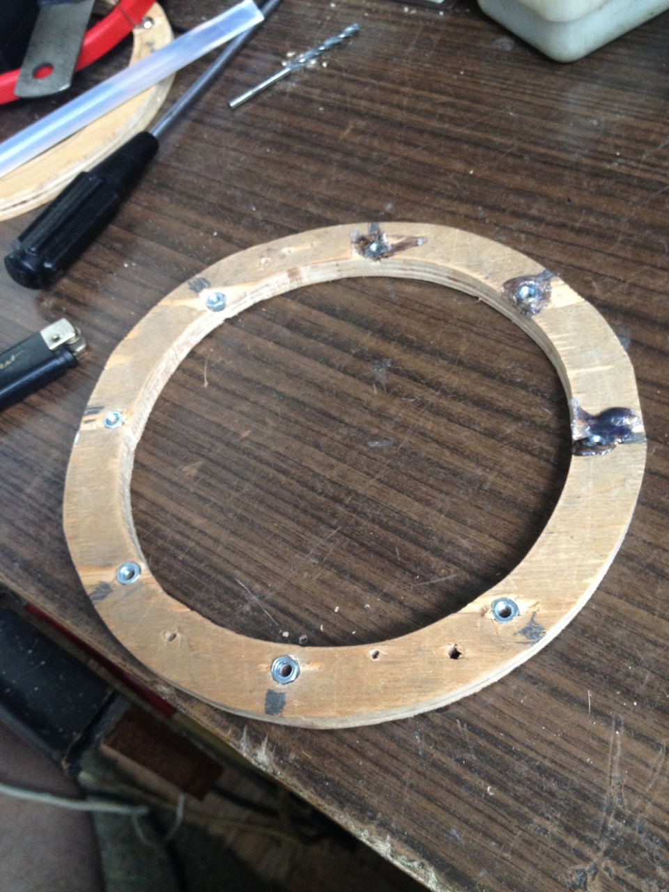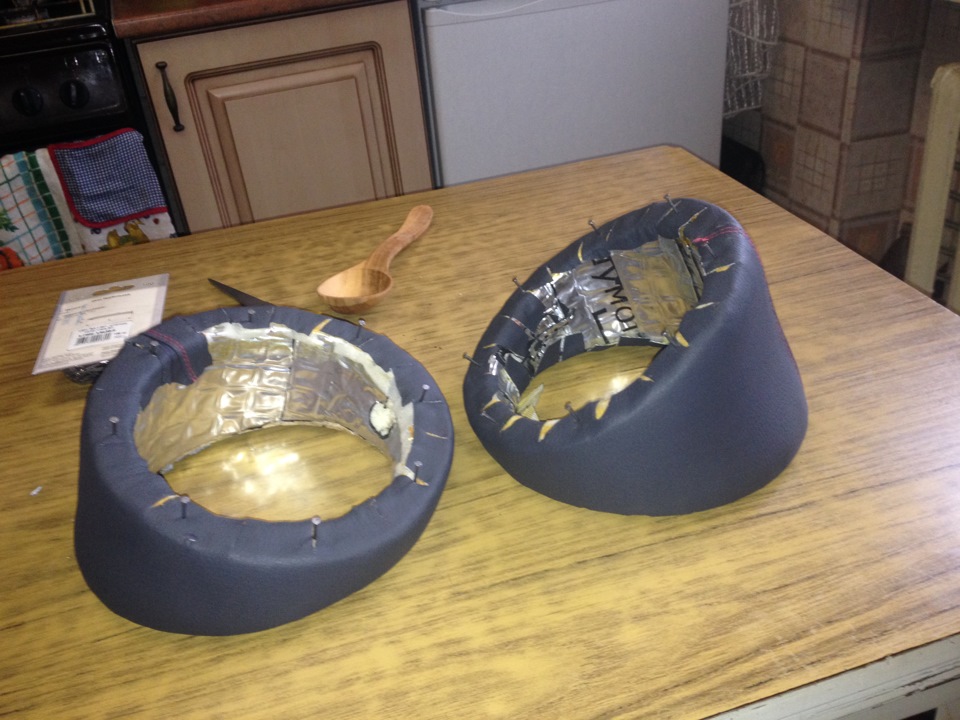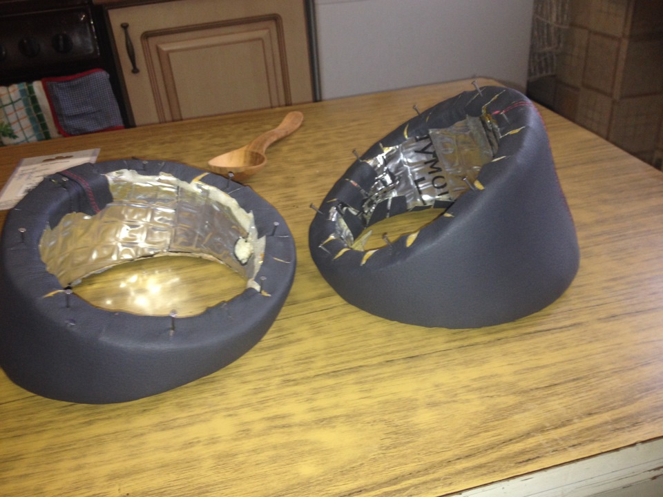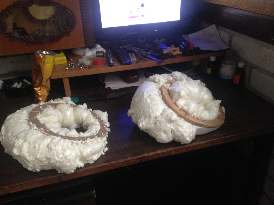 Захотелось мне "доворота". Решил все делать по давно обкатоной технологии и двумя деревянными кольцами и монтажной пеной. Далее весь подиум из нутри проклеен виброй м2, внешне обтянут паралоном 3мм и поверх красивеньким кожзамом с красной строчкой(которую в салоне нифига не видно).