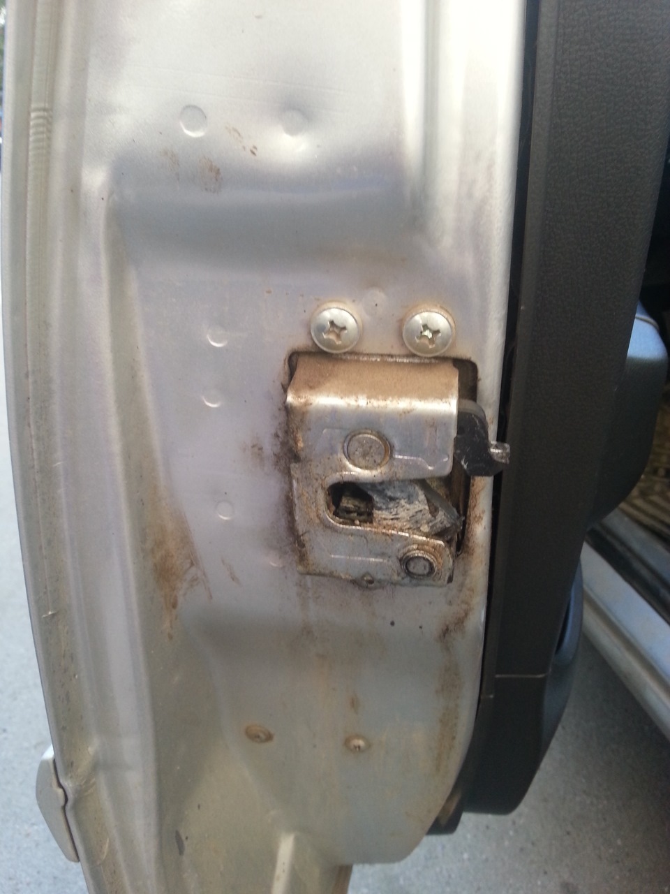 Замок дверной вообще засранный, хоть бы грязь убрал перед смазкой.