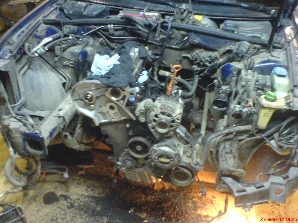 На этом авто чтобы добраться до грм надо разобрать всю морду что и было сделано вот немного фото.