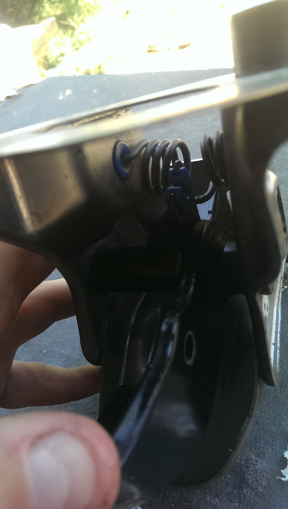 Как то залез под педали и нашел синий кусок пластмассы, посмотрел в сторону педалей — такого цвета пластмасски стоят втулки на пружине педали. Не мог и подумать что все щелчки от нее.Посветив фонариком увидел там отсутствие втулки и расколотый кусок пластмассы. Решено было решать проблему.