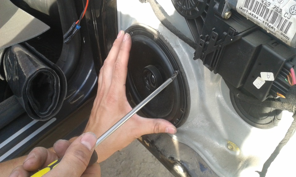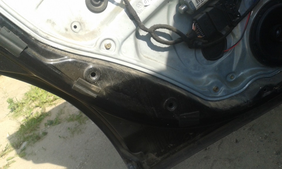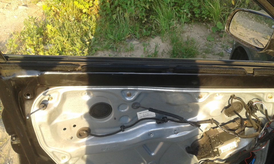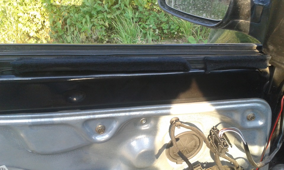 И уж если шумил надо было уж более заморочиться разобрать дверь и там где стекло промыть все и проклеет — звук от музыки станет еще лучше.