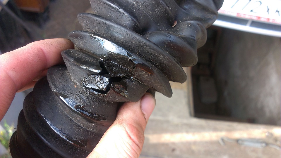 6.Стаскиваем пыльник, аккуратна, может потечь смазка из него!