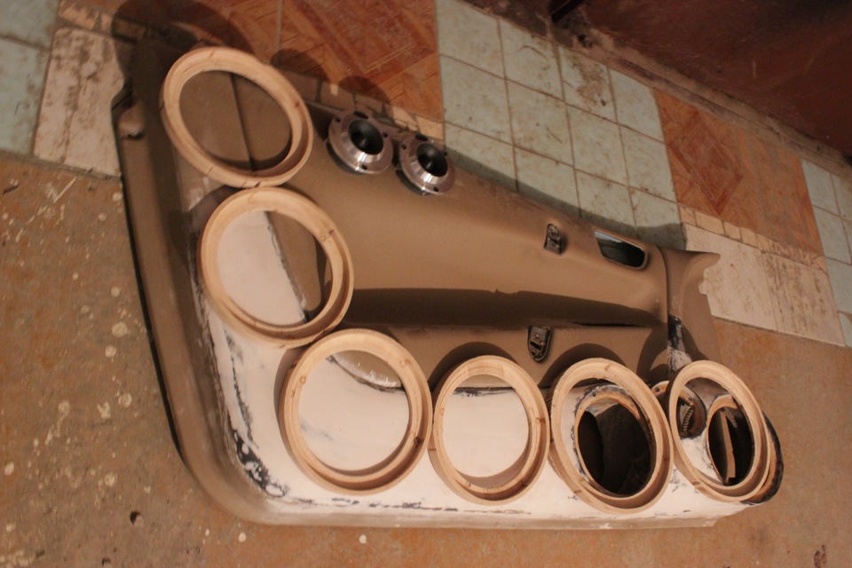 Привет! Снова сняли обшивки. Начали пилить кольца под новые габариты динамиков:) Скоро старая работа будет разломанна и создастца новая обшивка!