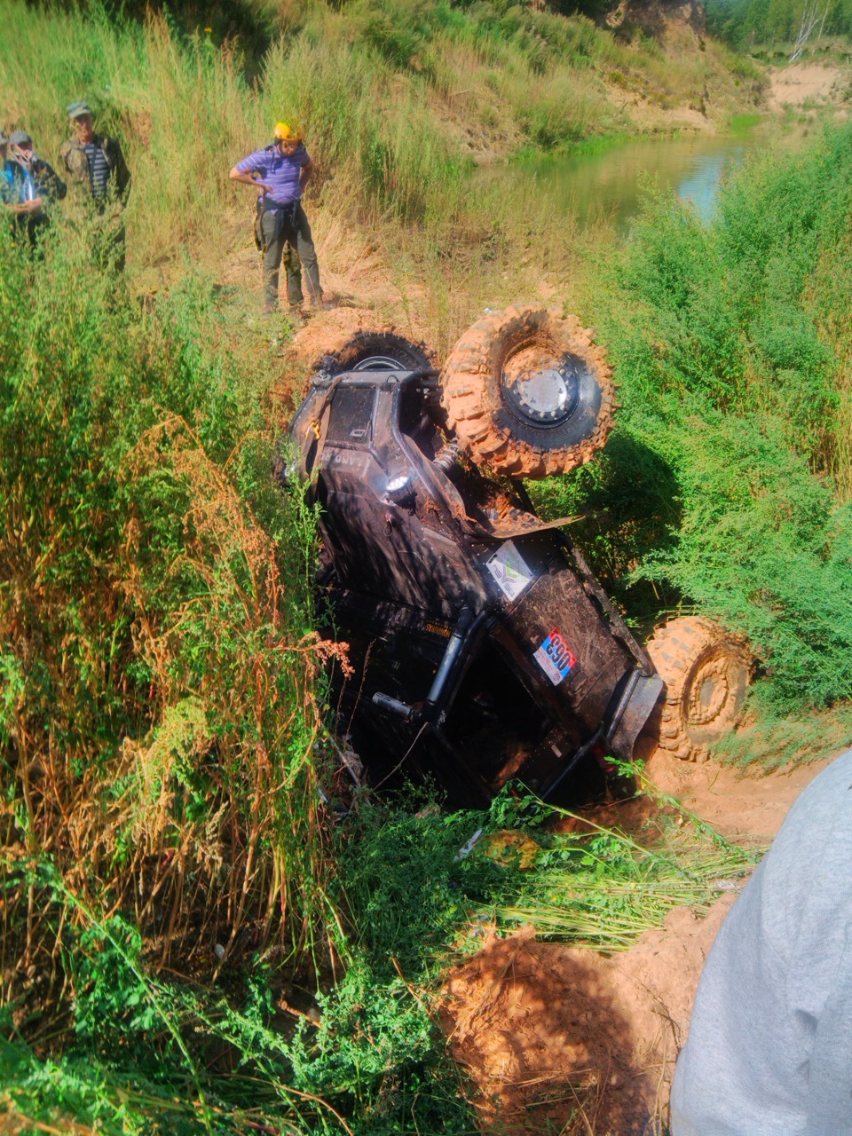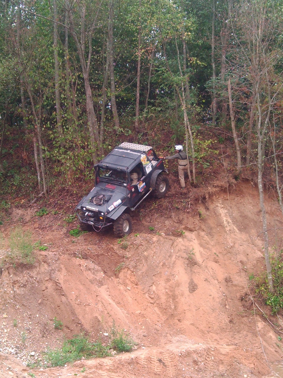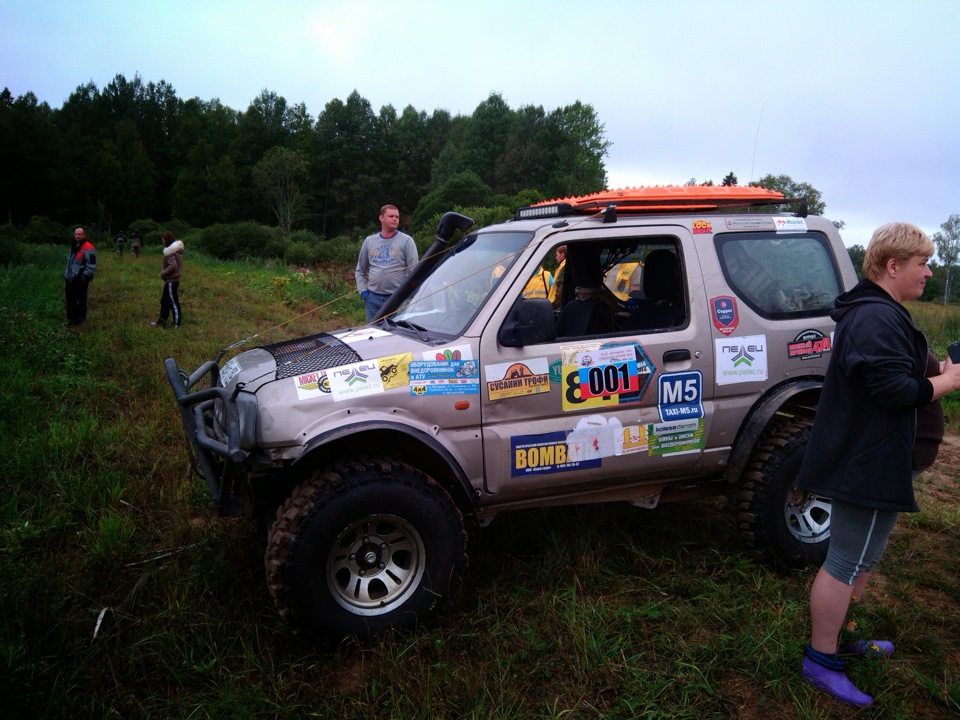 С дефом все ОК :) Выполнили двойной тулуп ! За счет пристегнутости пилота и наличию каркаса пострадала только нервная система штурмана, который наблюдал за выполнение упражнения со стороны :) На колеса встали за 5 минут, но оказалось порвали левый передний тайрлок и разбортировали колесо… Следующие полтора часа занимались восстановлением обуви, потом взяли пару точек и на финиш… А, еще немного помяли правую дверь…