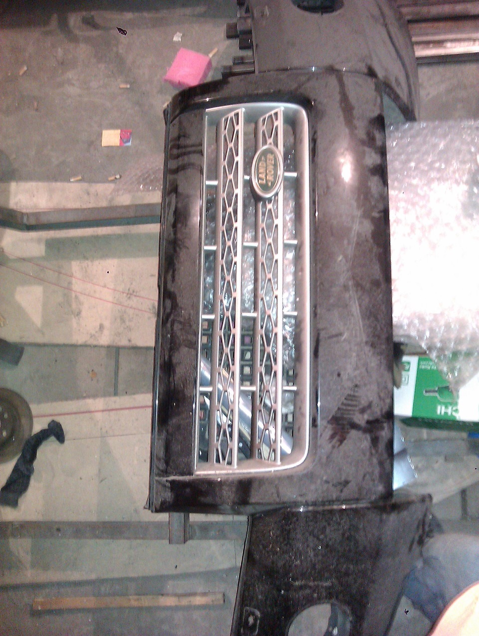 6 лет он там валялся без дела, но теперь настало его время. Из лэндроверского бампера будут вырезаны некоторые нужные мне плоскости, и пойдут они для переделки выреза под переднюю решетку радиатора.